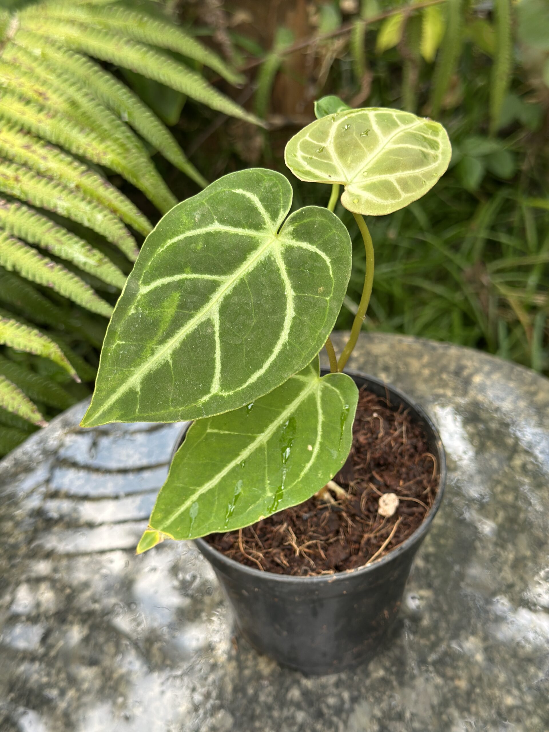 Anthurium regale is one of the most majestic velvet anthuriums, loved for its huge, heart-shaped leaves and striking silvery-white veins. It truly lives up to its name “regale,” meaning royal .