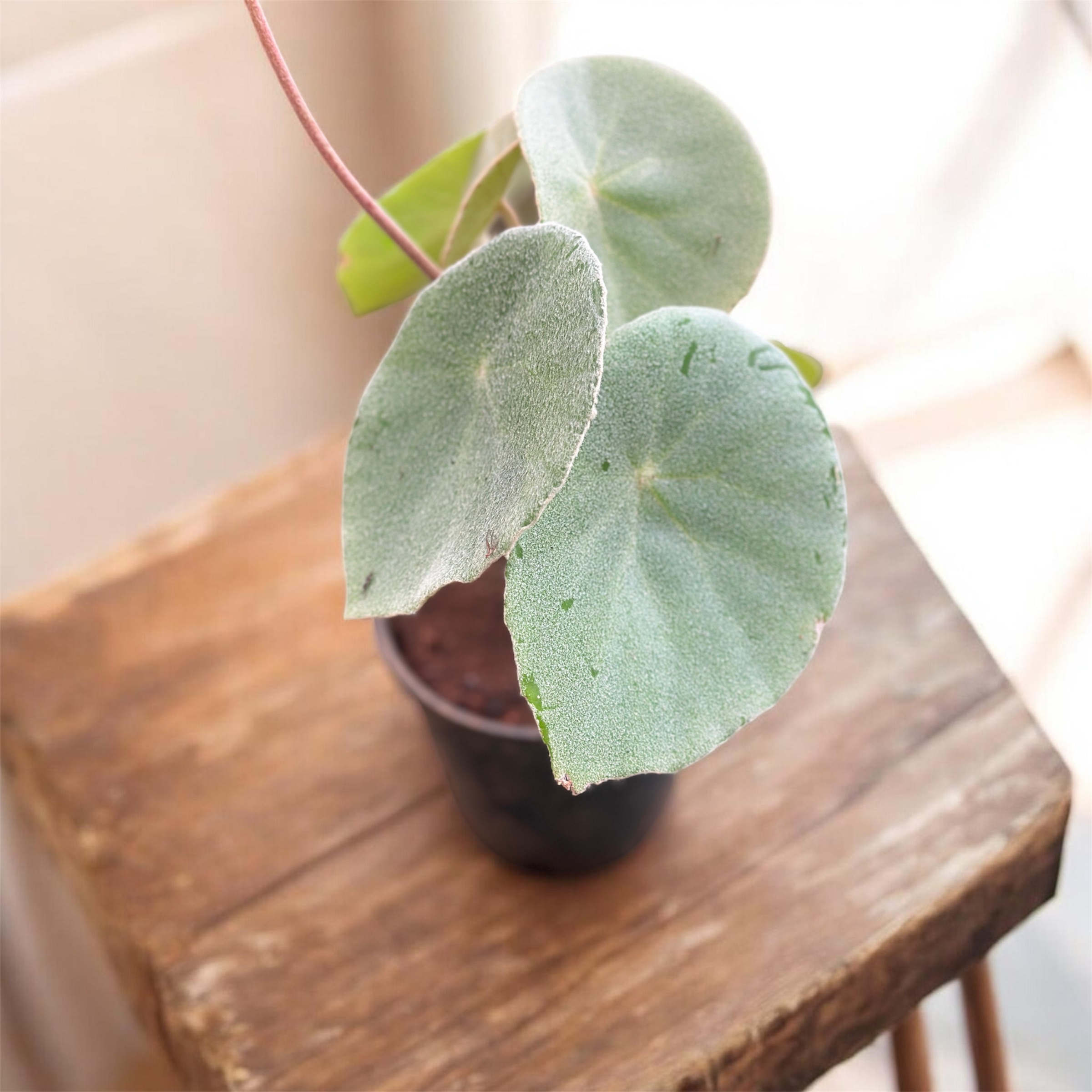Begonia peltata is a species of flowering plant in the Begoniaceae family, known for its shield-shaped fuzzy leaves and delicate flowers. It is sometimes called fuzzy-leaf begonia or Kellerman’s begonia.
