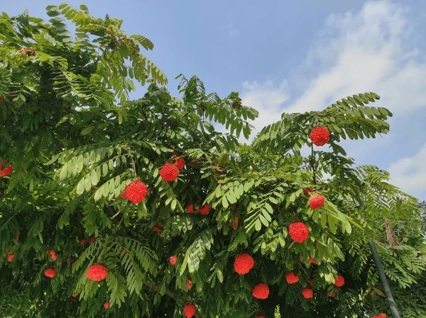 Brownea grandiceps, often called the Scarlet Flame Bean or Rose of Venezuela, is an extraordinary tropical tree admired for its breathtaking clusters of bright red flowers. Native to South America but also cultivated in regions such as Sri Lanka, this ornamental species can grow 10–15 feet tall in gardens, often forming a rounded canopy of glossy green leaves. The most spectacular feature is its massive, ball-shaped flower clusters that hang gracefully from the branches, each bursting with dozens of scarlet blossoms. When in bloom, the tree becomes a show-stopping centerpiece, drawing attention from a distance and attracting pollinators like birds and butterflies.