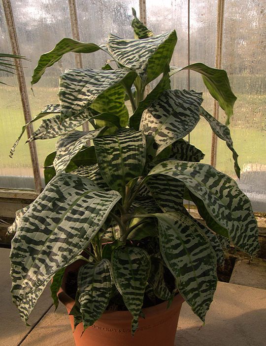 The Dracaena goldieana, often called the Zebra Striped Dragon Tree or Queen of Dracaenas, is a highly ornamental and relatively rare houseplant native to the tropical rainforests of West Africa. This species is celebrated for its striking, broad, oval-shaped leaves, which are a deep green and beautifully marbled with transverse, silvery-white or pale green horizontal stripes, creating a dramatic, zebra-like pattern. Unlike some of its taller relatives, it maintains a more compact, upright, shrub-like habit, typically reaching to