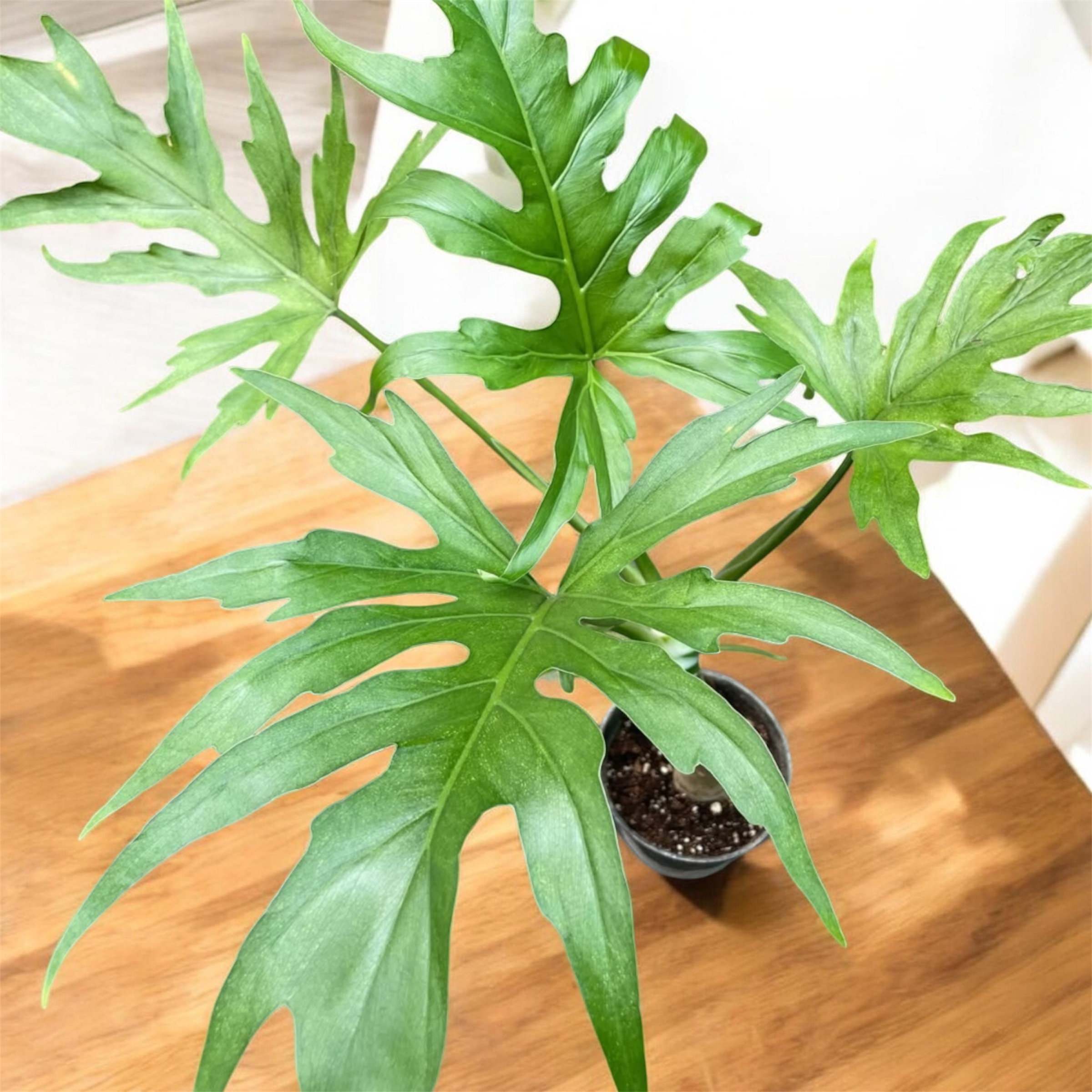 - Deeply Divided “Feathered” Leaves: Unlike the simple, heart-shaped leaves of its juvenile form, mature P. warscewiczii develops deeply lobed, laciniate (fern-like) leaves.